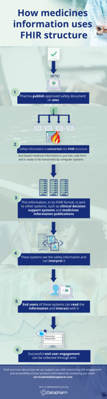 emc processes on average over 650 changes to SmPCs a month which means anyone publishing medicines and medical content has a significant job on their hands if they want to stay up-to-date. Now that medicines information is being made available in FHIR format, the job of updating medicines information can be automated, again requiring less time and resource. Additionally, new functionality and understanding of medicines like interactions checkers and Adverse Drug Reaction checkers can be enhanced and enriched, delivering more value and insight directly to HCPs and patients.
