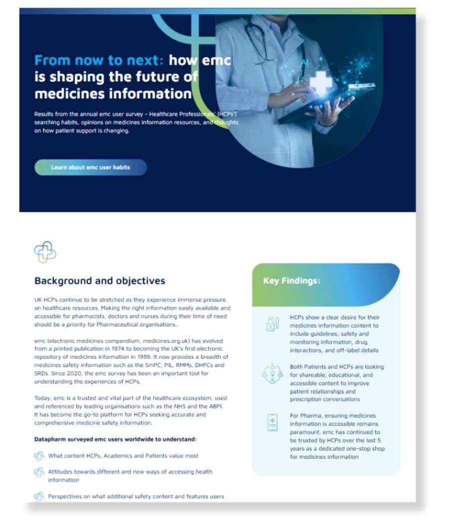 Healthcare professionals are under increasing pressure to access reliable medicines information, quickly and in the formats they trust. In this 60 minute masterclass, Datapharm Product Manager Tara Protheroe shares insights from their 2025 electronic medicines compendium (emc) survey of over 600 HCPs, revealing how they are using online resources to support prescribing decisions.